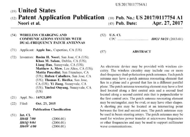 五月初微信朋友圈被蘋果黑專利新聞刷屏了。新聞中稱“蘋果最新專利‘雙頻天線的無線充電和通信系統’通過美國專利局審核”。5月4日,我們提出壹個命題:如何把新聞中提到的這篇文獻檢索出來。