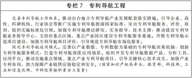 在近日国务院印发的《“十四五”国家知识产权保护和运用规划》(下称《规划》)中,对我国未来5年知识产权事业发展作出“施工部署”,其中,围绕“提高知识产权转移转化成效”,设立了专利导航等5个专项工程。